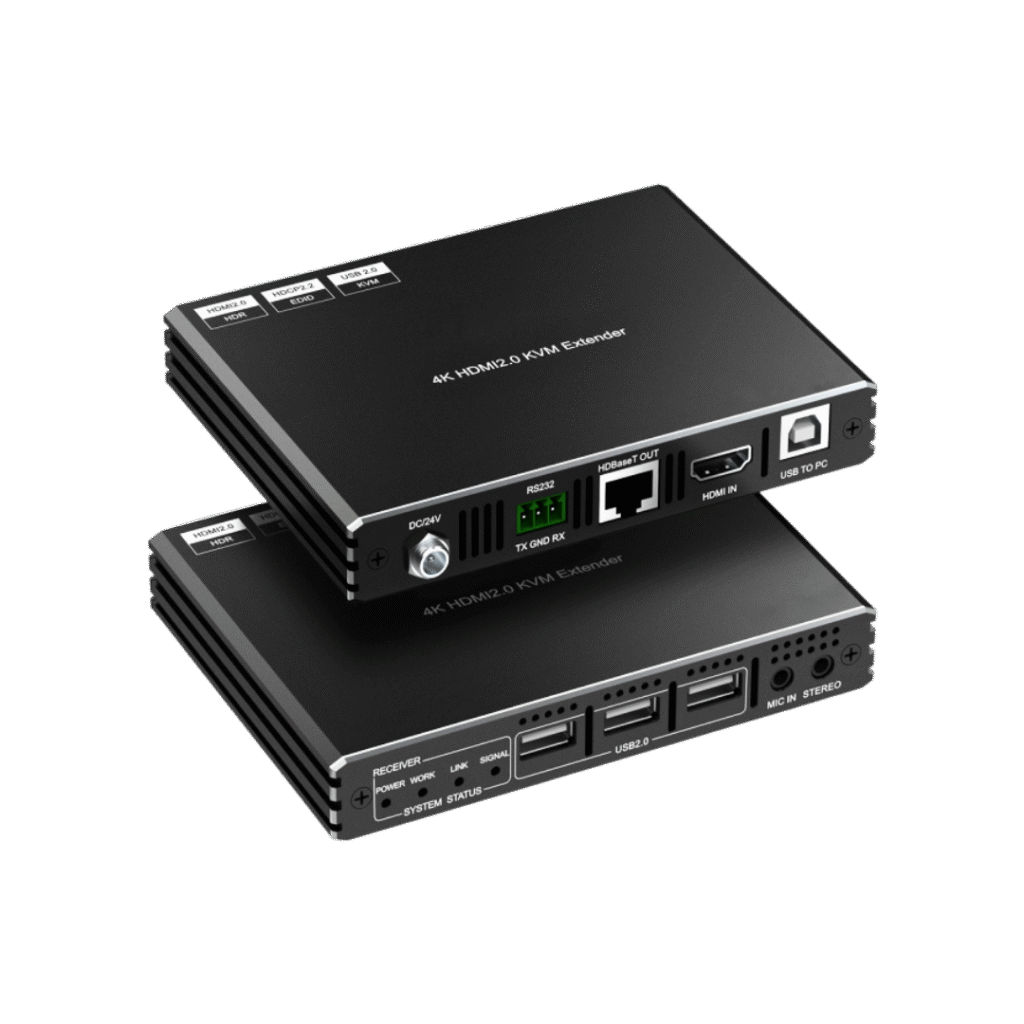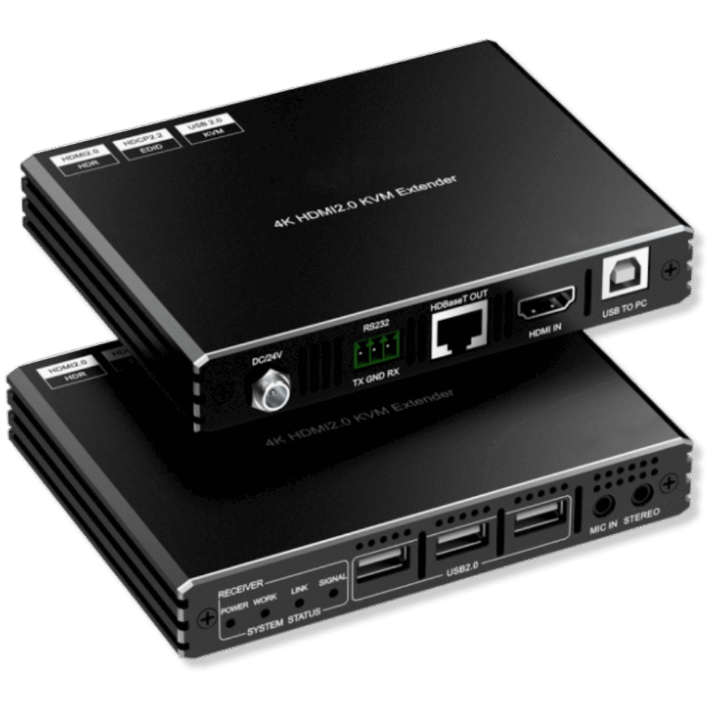 Depending on the model, our HDMI extenders support distances up to 100 meters using CAT6/7 cables.