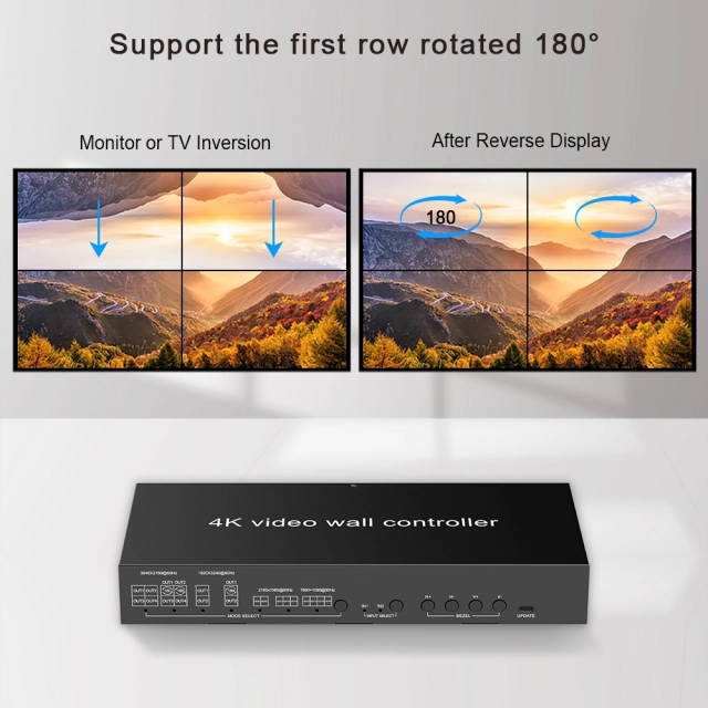Offering multiple display configurations—2×2, 1×2, 1×3, 1×4, and 2×1—this controller provides flexible video wall management with precise EDID handling. It includes stereo audio de-embedding and supports full signal retiming for lossless output, even over longer cable distances.